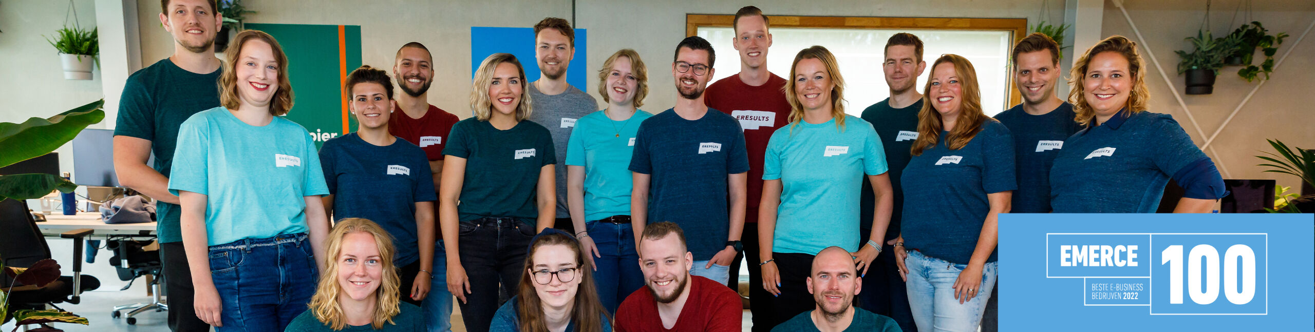 De Emerce100 is een publicatie van Emerce, een magazine dat al sinds 1998 succesvolle concepten en technologieën in de marketing, media en e-business signaleert. Het onderzoek vindt plaats onder lezers van Emerce die gebruikmaken van e-business bedrijven. De Emerce bestaat uit een aantal categorieën, waaronder Bureaus. *eResults valt op een gedeelde 3e plek in de categorie ‘Digital Agency Full Service klein’. Met eigen ogen zien? Bekijk de lijst van 2022 hier.